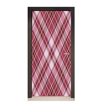Amazon Com Checkered 3d Door Sticker Diagonal Checkered Pattern