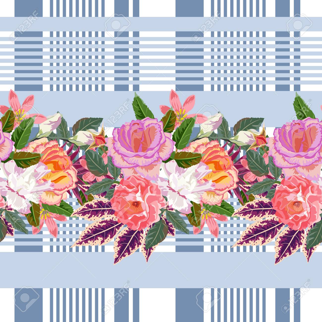Seamless Pattern With Beautiful Delicate Roses On Checkered