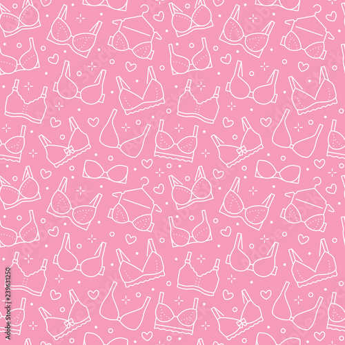 Lingerie Seamless Pattern With Flat Line Icons Of Bra Types Woman