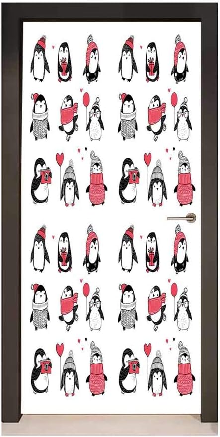 Amazon Com Homesonne Winter Decor Door Mural Cute Penguins Hand