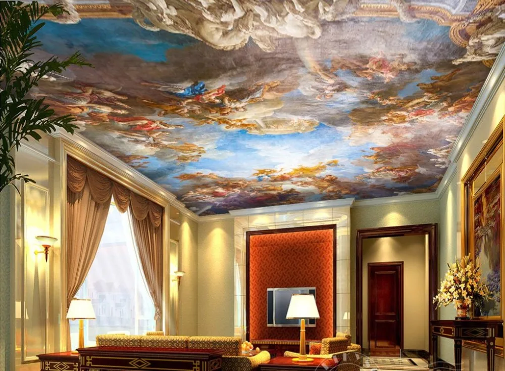 27 ceiling wallpaper design and ideas. Make the room looks bigger create an atmosphere or add interest with traditional frescos starry skies puffy clouds or any one of our over 30000 murals. Create an entire natural environment with sets of luminous virtual windows and luminous skyceilings.