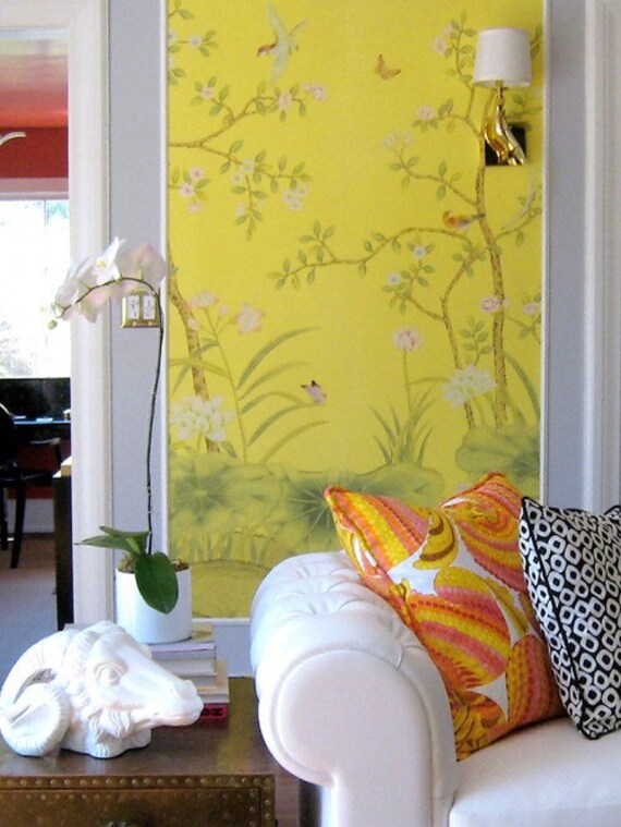 Hand Painted Wallpaper Chinoiserie Wallpaper Silk Wallpaper