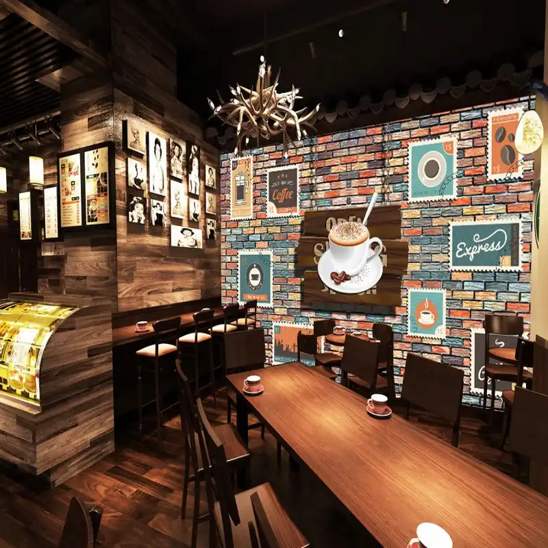 Beibehang Custom Wallpaper Retro Log Restaurant Cafe Wallpaper