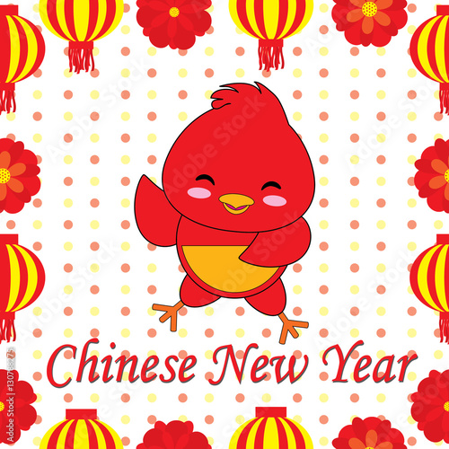Chinese New Year Illustration With Cute Rooster On Polka Dot