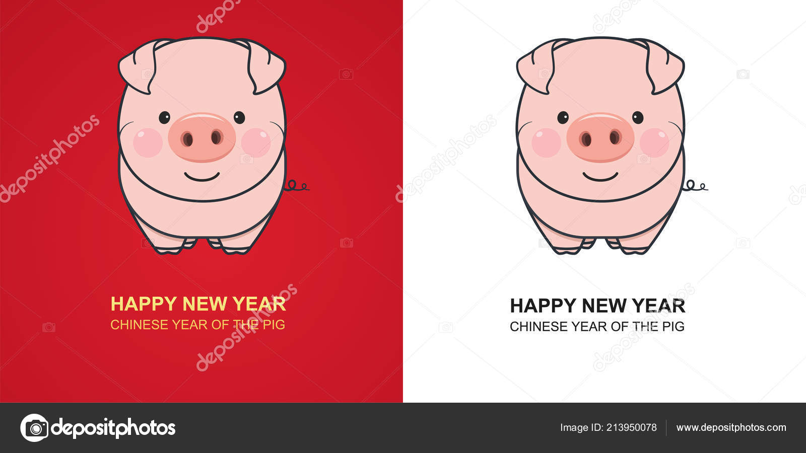 Niedliche Schwein Auf Roten Und Weissen Hintergrund Chinese New