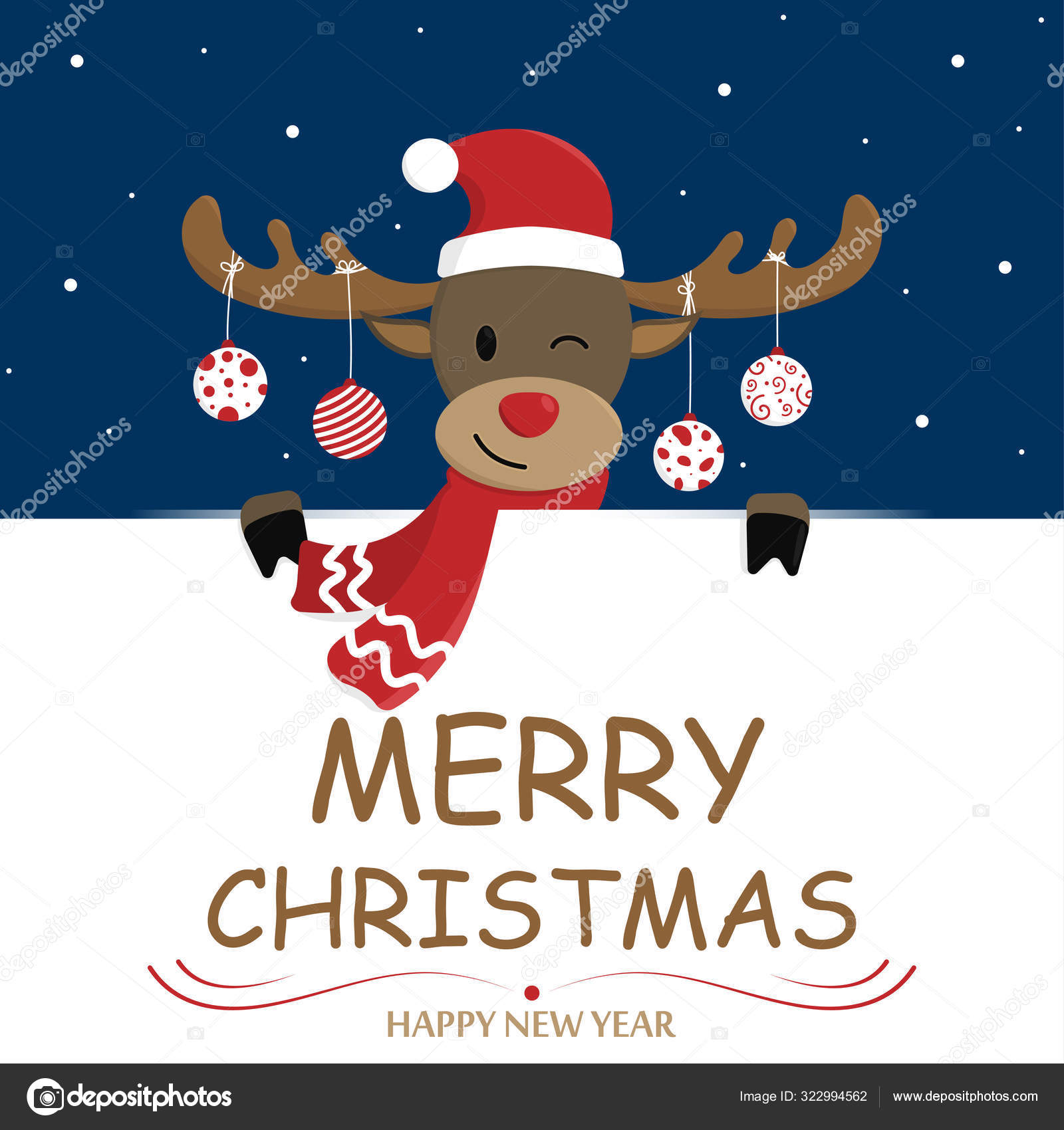 Christmas Cartoon Deer Moose Merry Christmas And Happy New Year