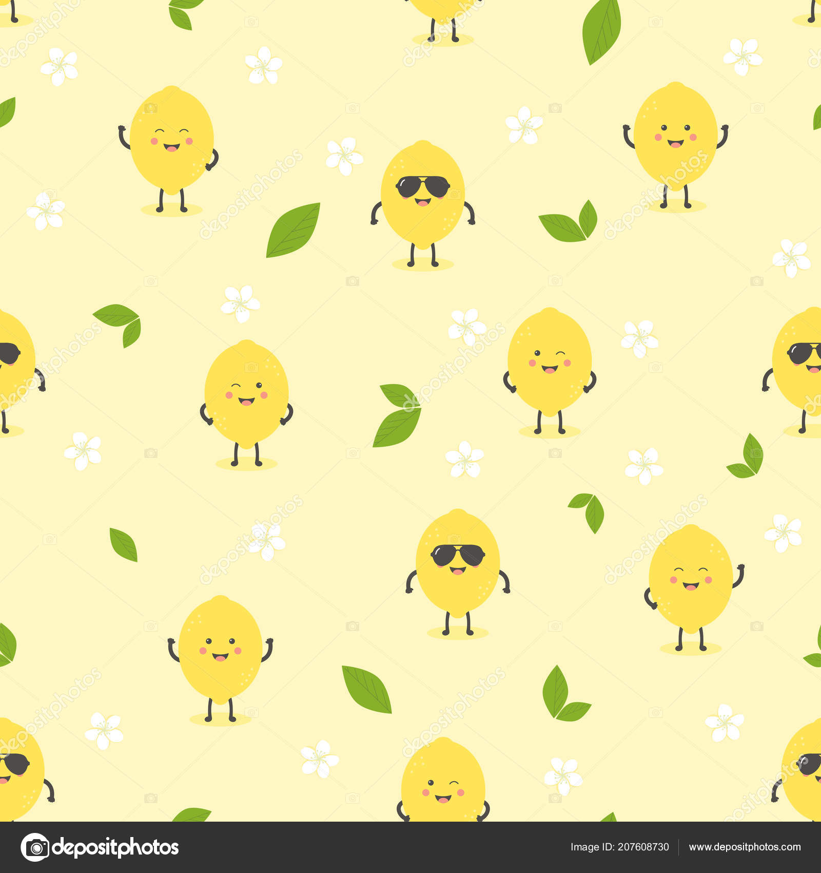 Seamless Pattern Cute Lemons Different Emotions Lemons Glasses