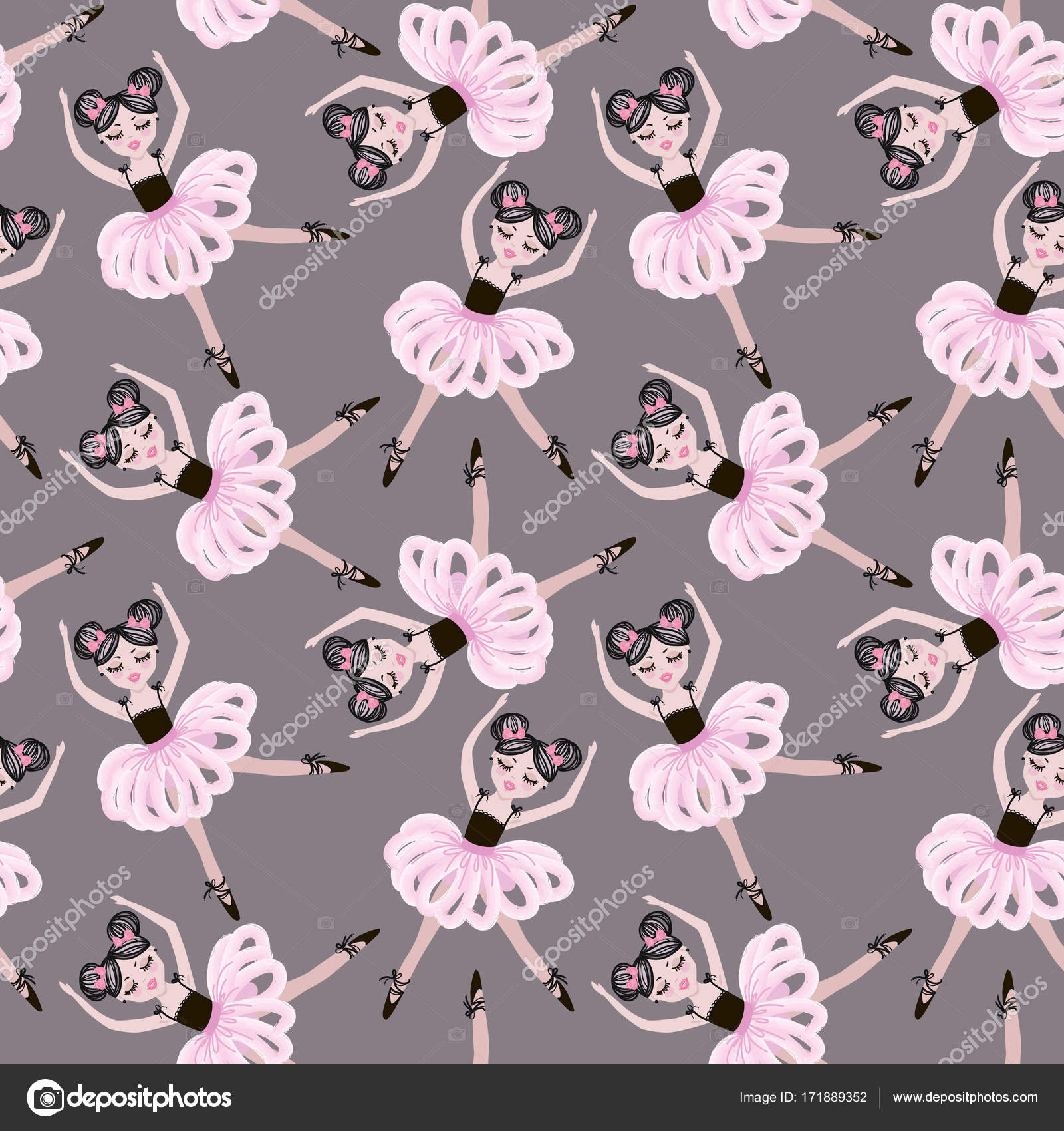 Seamless Pattern With Hand Drawn Ballerinas Cute Dancing Girls