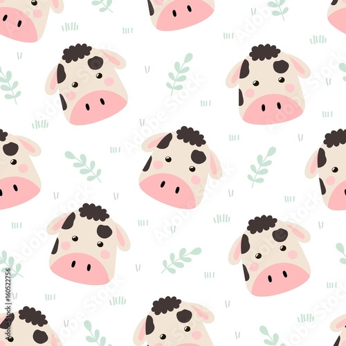 Cute Cow Seamless Pattern Funny Background For Baby And Kids