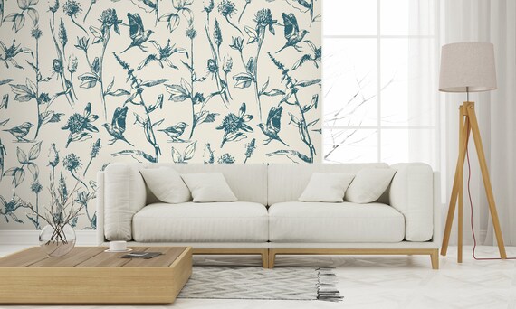 Wallpaper Green Birds 159 Wallpaper Classic Wallpaper Etsy
