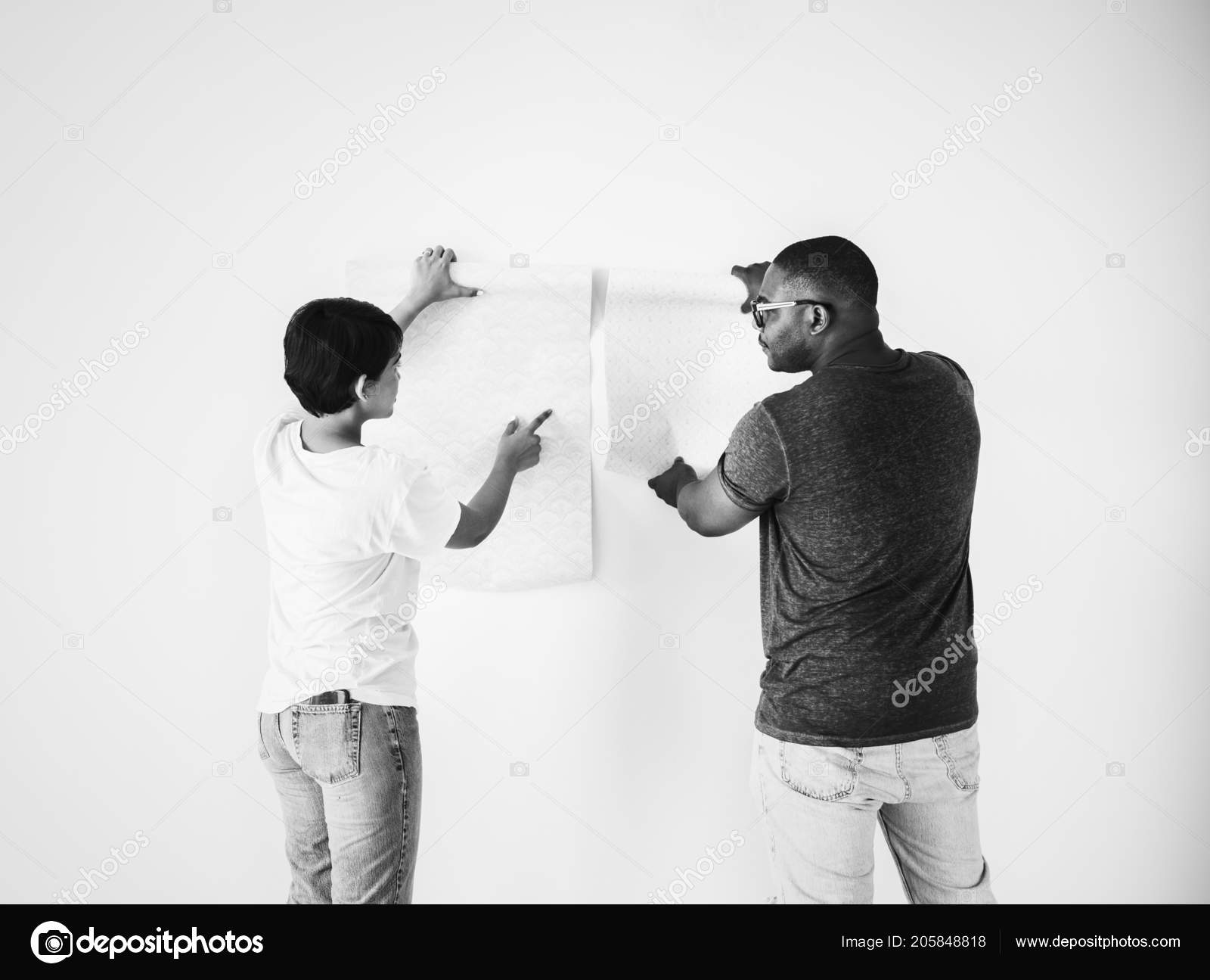 Couple Putting New Wallpaper Stock Photo C Rawpixel 205848818