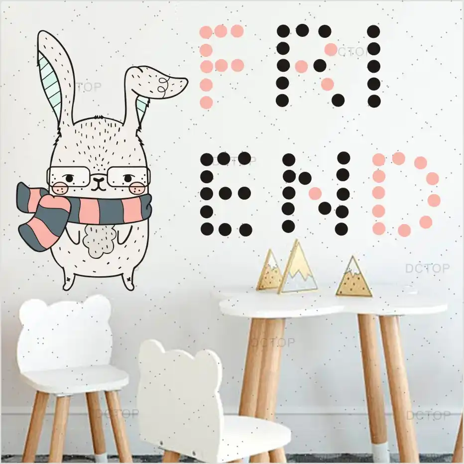 Geometric Small Bunny Sweet Pattern Wall Stickers For Kids Room