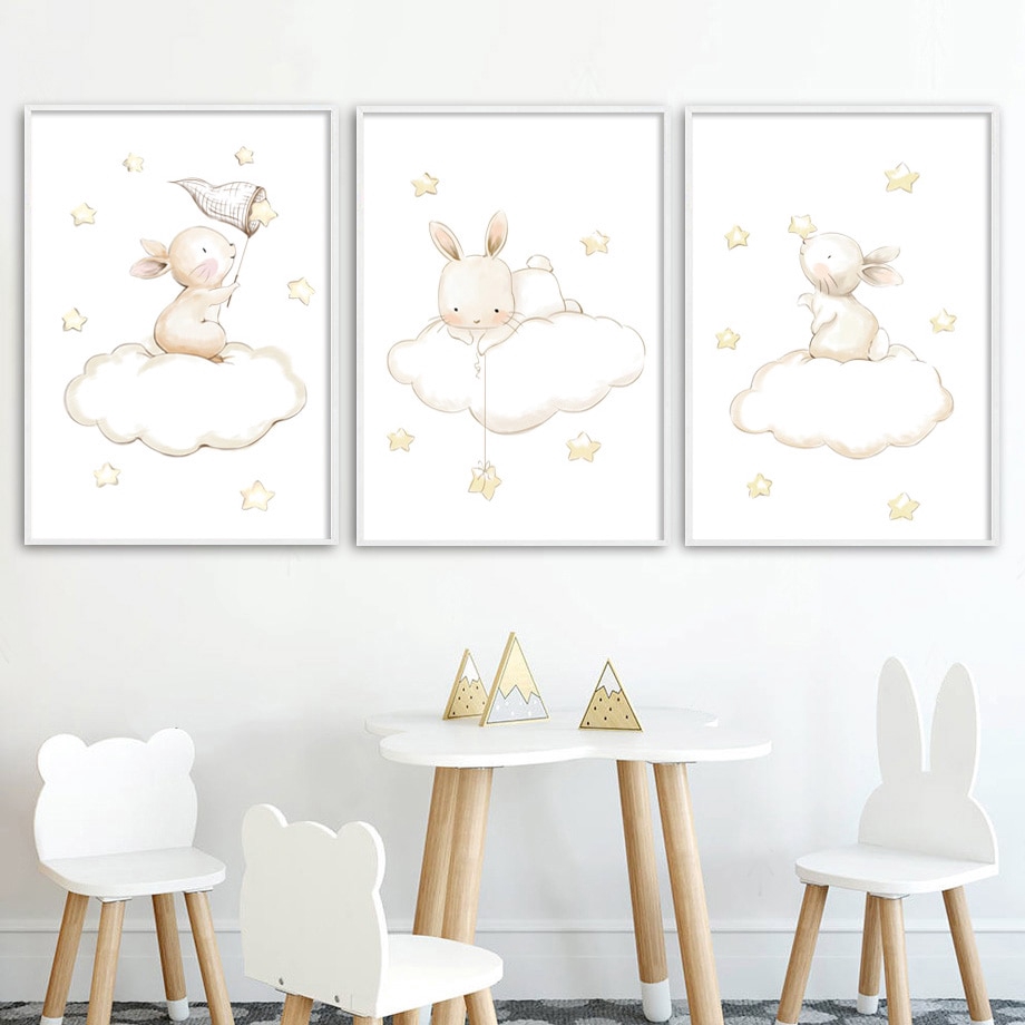 Rabbit Cloud Star Nordic Posters Prints Canvas Bunny Nursery