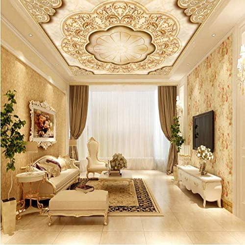 Custom Gold European Style Hotel Living Room 3d Ceiling Wallpaper