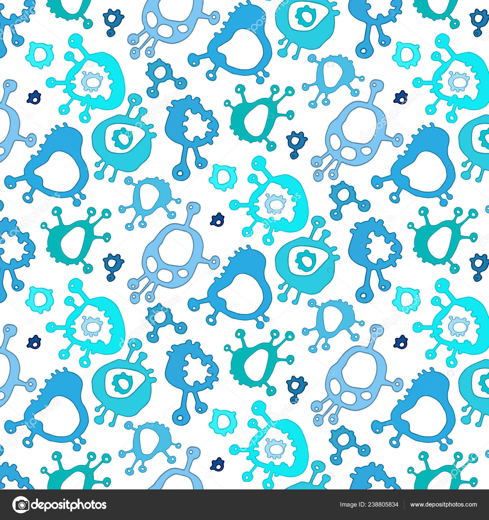 Funny Blue Bacteria Vector Illustration Seamless Pattern Printing