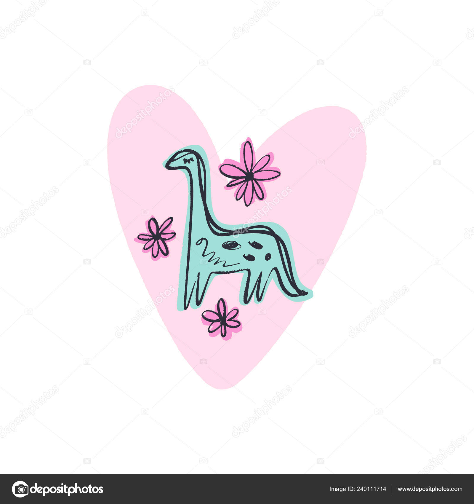 Funny Doodle Cute Bany Girl Diplodocus Dinosaur Baby Stylish Art