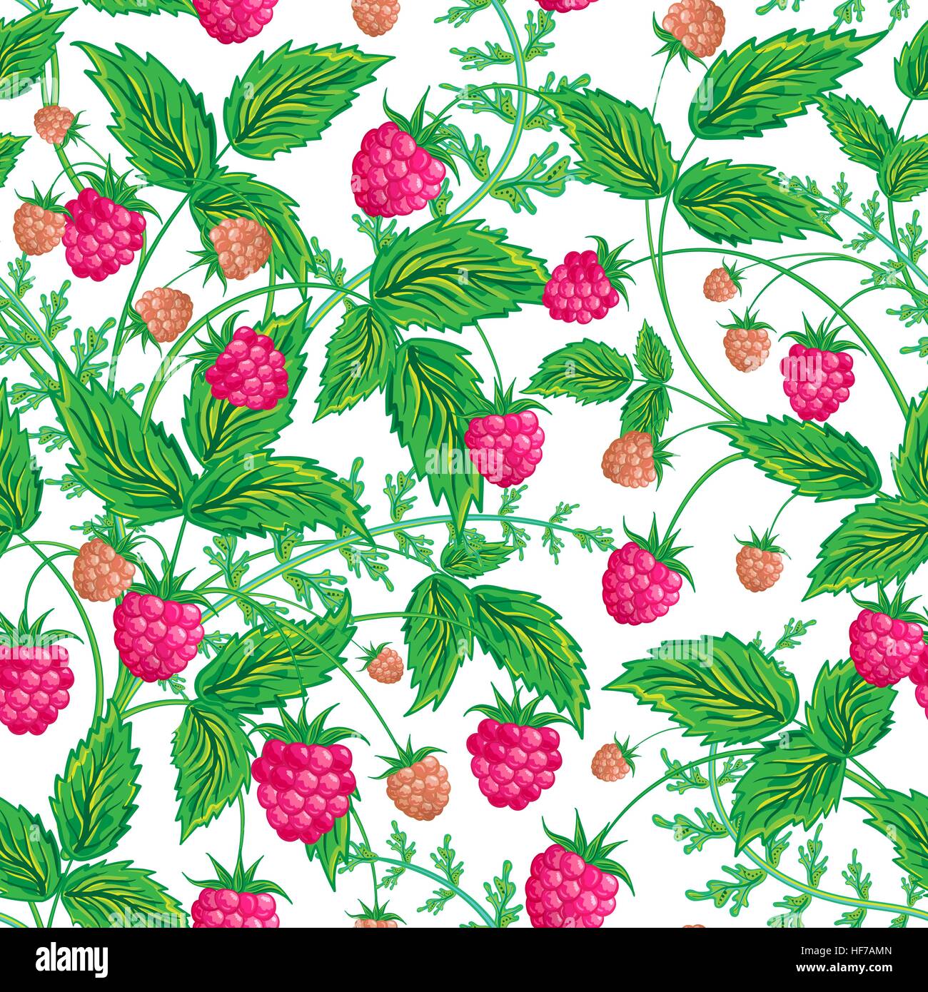 Seamless Raspberry Pattern Cute Hand Drawing Raspberry Background