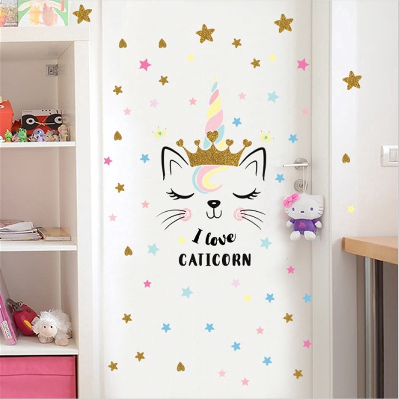 Diy 3d Pvc Cartoon Cute Unicorns Star Heart Cat Wall Stickers Chid