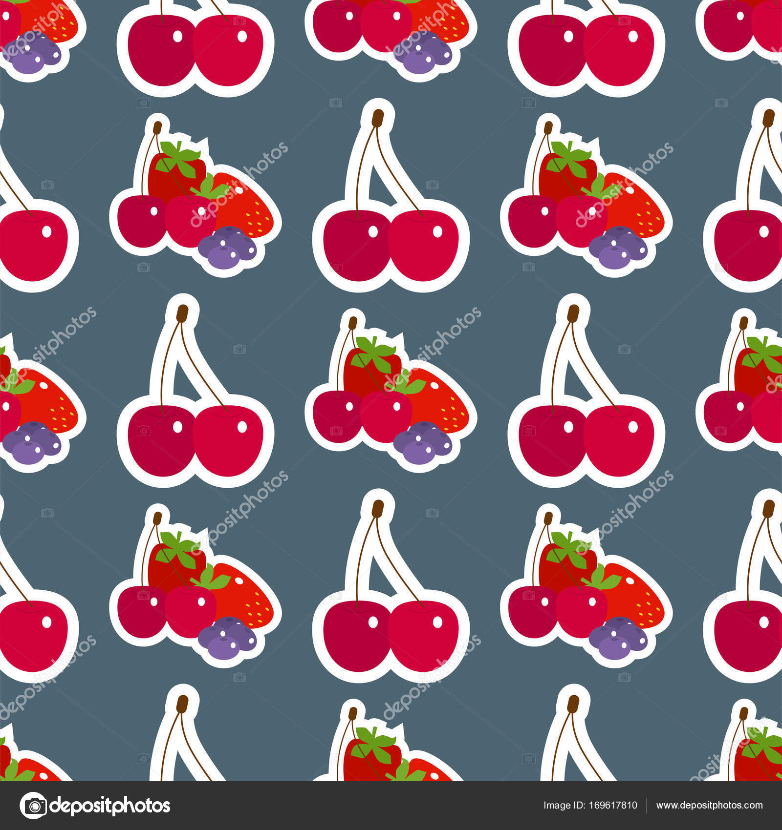 Cartoon Fresh Cherry Fruits In Flat Style Seamless Pattern